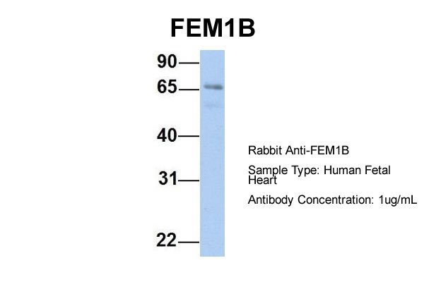Host:Rabbit Target Name:FEM1B Sample Tissue:Human Fetal Heart Antibody Dilution: 1.0μg/ml |