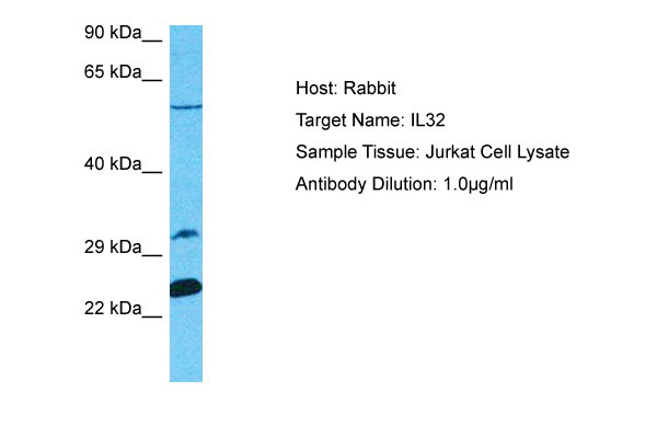 Host: Rabbit Target Name: IL32 Sample Tissue: Jurkat Whole cell lysates Antibody Dilution: 1.0μg/ml |
