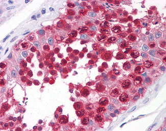 Anti-CSE1L antibody IHC of human testis. |