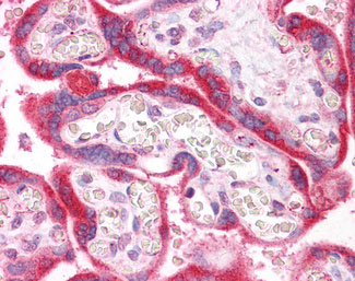 Anti-IRAK1 / IRAK antibody IHC of human placenta. |