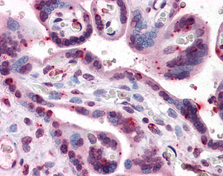Anti-PRKG1 / CGKI antibody IHC of human placenta. |