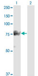 Western blot of SMURF1 expression in Raw 264.7 cells with SMURF1 monoclonal antibody, clone 1D7.