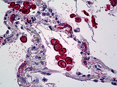 Anti-CD206 antibody IHC of human lung, macrophages. |