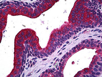 Anti-MAPK13 / SAPK4 antibody IHC of human prostate. |