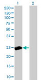 Western blot of RALB expression in transfected 293T cell line by RALB monoclonal antibody clone 4D1.