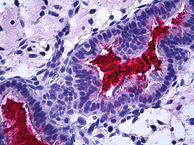 Anti-ERBB2 / HER2 antibody IHC of human uterus, endometrium. |