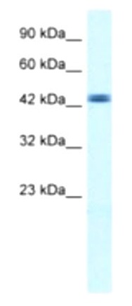 Western blot analysis of TTRAP in HepG2 Cell Lysate using TTRAP antibody at 0.5 ug/mL (12% gel). |