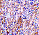 Immunohistochemistry of CAD in mouse kidney tissue with CAD antibody at 1 μg/mL.
