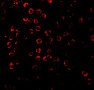 Immunofluorescence of SODD in Hela cells with SODD antibody at 20 μg/mL. |