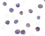 Immunocytochemistry of DRAK2 in Jurkat cells with DRAK2 antibody at 10 μg/mL. |