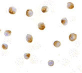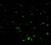 Immunofluorescence of DFF40 in Jurkat cells with DFF40 antibody at 20 μg/mL. |
