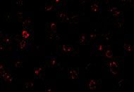 Immunofluorescence of CX3CR1 in THP-1 cells with CX3CR1 antibody at 20 μg/mL. |