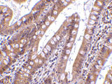 Immunohistochemistry of CIDE-B in human small intestine tissue with CIDE-B antibody at 5 μg/mL.