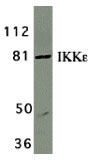 IKK epsilon Antibody: Nuclear factor kappa B (NF-κB) is a ubiquitous transcription factor and an essential mediator of gene expression during activation of immune and inflammatory responses. NF-κB mediates the expression of a great variety of genes in response to extracellular stimuli. NF-κB is associated with IκB proteins in the cell cytoplasm, which inhibit NF-κB activity. IκB is phosphorylated by IκB kinase (IKK) complex that contains IKKα, IKKβ, and IKKγ. A novel molecule in the IKK complex was recently identified and designated IKKε/IKK-i. IKK epsilon is required for the activation of NF-κB by PMA and T cell receptors but not by TNFα and IL-1. IKKε/IKK-i message is expressed in a variety of tissues and is inducible by TNFα, IL-1, and LPS.