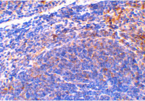 Immunohistochemical staining of mouse spleen tissue using Smac antibody at 2 μg/mL.