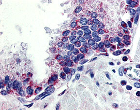 Immunohistochemistry of APRIL in human prostate tissue with APRIL antibody at 10 μg/mL. |