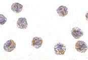 Immunocytochemistry of MCG10 in HeLa cells with MCG10 antibody at 1 μg/mL.