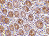 Immunohistochemistry of AATF in human small intestine tissue with AATF antibody at 10 μg/mL.