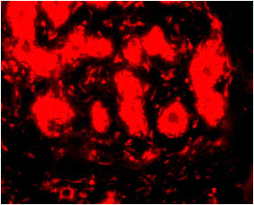 Immunofluorescence of TRIM5 alpha in human breast tissue with TRIM5 alpha antibody at 10 μg/mL.