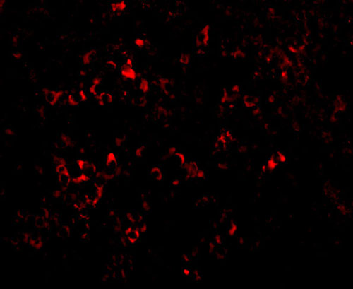 Immunofluorescence of PAK2 in mouse spleen tissue with PAK2 antibody at 20 μg/mL. |