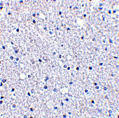 Immunohistochemistry of TIGAR in human brain tissue with TIGAR antibody at 2.5 μg/mL. |