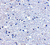 Immunohistochemistry of PD-1 in human brain tissue with PD-1 antibody at 5 μg/mL. |