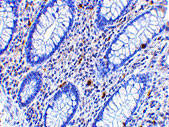 Immunohistochemistry of KAI1 in human colon tissue with KAI1 antibody at 2.5 μg/mL.
