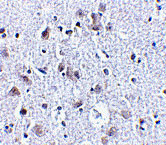 Immunofluorescence of BRSK1 in Human Brain cells with BRSK1 antibody at 20 μg/mL. |