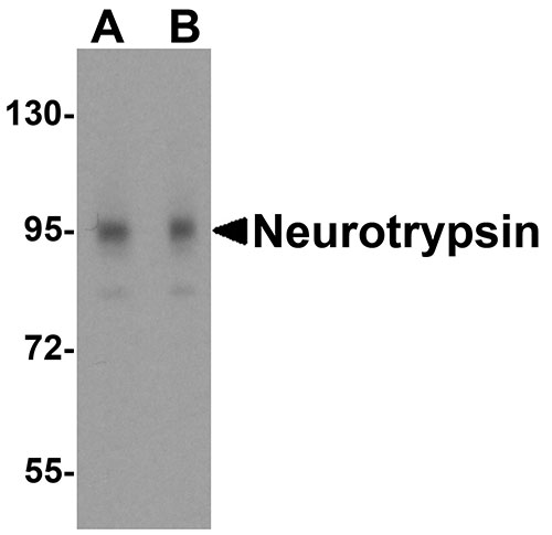 Neurotrypsin Antibody: Neurotrypsin is a central nervous system-expressed serine protease whose truncation or absence causes nonsyndromic mental retardation. It is most prominently expressed in structures that are involved in the processing and storage of learned behavior and memory, such as the cerebral cortex, the hippocampus, and amygdala. Evidence suggests that neurotrypsin has multiple functions, including axonal outgrowth, maintaining neuronal plasticity, and arranging the perineuronal environment, partly in coordination with other proteases including tissue plasminogen activator. At least two isoforms of neurotrypsin are known to exist.