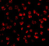 Immunofluorescence of FGF4 in 3T3 cells with FGF4 antibody at 2.5 μg/mL. |