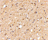 Immunohistochemical staining of human brain tissue using LGI2 antibody at 2.5 μg/mL.