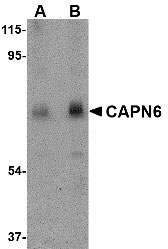 CAPN6 Antibody: Calpains make up a ubiquitously expressed, well-conserved family of calcium-dependent cysteine proteases. The calpain proteins are heterodimers consisting of an invariant small subunit and variable large subunits. This large subunit possesses a cysteine protease domain, and both subunits possess calcium-binding domains. Calpains have been implicated in neurodegenerative processes as their activation can be triggered by calcium influx and oxidative stress. Calpain 6 (CAPN6) is most similar to Calpain 5; the C-terminal region of CAPN6 lacks homology to the calmodulin-like domain of other vertebrate calpains. CAPN6 is thought to be involved in the regulation of microtubule dynamics and cytoskeletal organization. CAPN6 has also been recently identified as an HIV dependency factor (HDF), suggesting that CAPN6 may be an important drug target in HIV treatment.