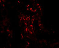 Immunofluorescence of TNFAIP3 in Human Lung cells with TNFAIP3 antibody at 20 μg/mL. |