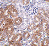 Immunohistochemistry of LIAR in mouse kidney tissue with LIAR antibody at 2.5 μg/mL.