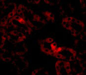 Immunofluorescence of LIAR in Mouse Kidney cells with LIAR antibody at 20 μg/mL. |
