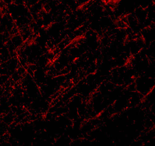 Immunofluorescence of JMJD6 in rat brain tissue with JMJD6 antibody at 20 μg/mL. |