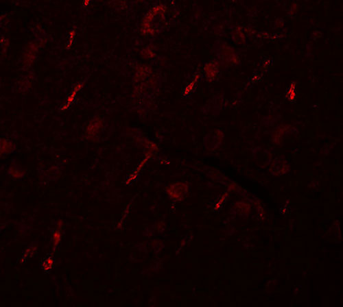 Immunofluorescence of SIPA1L2 in human brain tissue with SIPA1L2 antibody at 20 μg/mL.