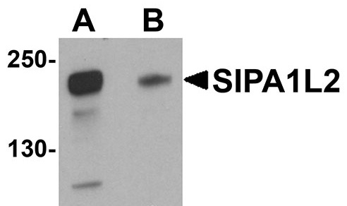 SIPA1L2 Antibody: Signal-induced proliferation associated-like protein 2 (SIPA1L2) is a member of the SIPA1 family of RapGAPs. Little is known of the role of the SIPA1L2 protein, but recent studies of SIPA indicate that its deregulation can cause myeloproliferative stem cell disorders in mice and increased metastases in human cancers. Other studies suggest SIPA1L1 may play important roles in embryo development and control of cell proliferation. Based on the amount of homology between SIPA family members, it is likely that SIPA1L2 plays a role in embryo development and cell proliferation, possibly including oncogenesis.