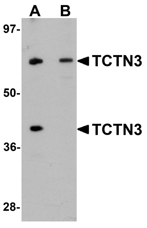 TCTN3 Antibody: TCTN3 is a member of the Tectonic protein family, a group of evolutionarily conserved secreted and transmembrane proteins that regulate the Hedgehog (Hh)-mediated patterning of the neural tube. While the expression pattern and function of TCTN3 is not known, it is 58% similar to TCTN1. TCTN1 is expressed during embryonic development in regions that participate in Hh signaling, beginning in the gastrulation stages in the ventral node. Mice expressing mutant TCTN1 die between E13.5 and E16.5 and display holoprosencephaly, a defect associated with reduced Hh signaling, indicating the role of TCTN1 as an Hh activator. At later stages in development, TCTN1 is thought to also act as a repressor on the Hh pathway in the anterior and posterior neural tube.
