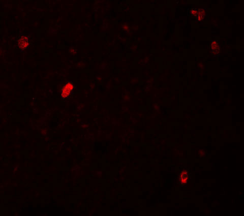 Immunofluorescence of FBXL16 in human spleen tissue with FBXL16 antibody at 20 μg/mL. |