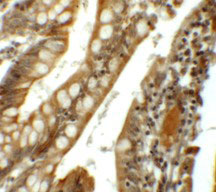 Immunohistochemistry of SIK1 in human small intestine tissue with SIK1 antibody at 5 μg/mL. |
