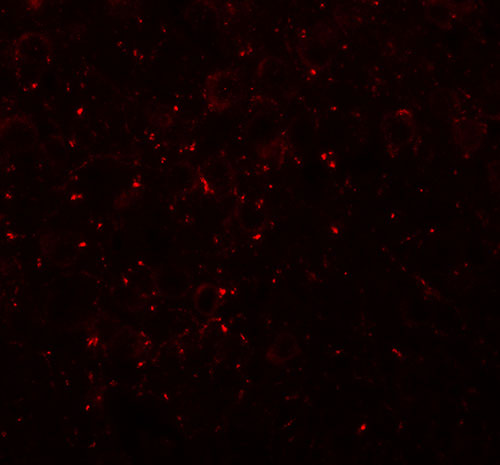 Immunofluorescence of CCDC141 in mouse brain tissue with CCDC141 antibody at 20 μg/mL. |