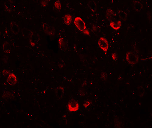 Immunofluorescence of SPRYD2 in mouse brain tissue with SPRYD2 antibody at 20 μg/mL. |