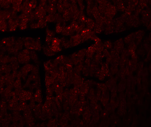 Immunofluorescence of DDA1 in mouse heart tissue with DDA1 antibody at 20 μg/mL. |
