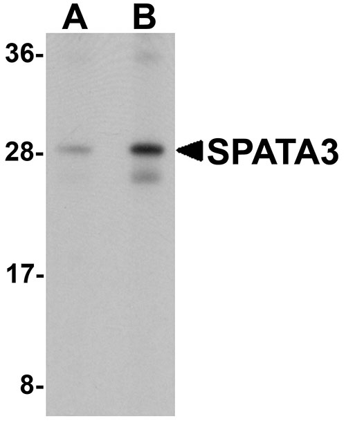 SPATA3; At least three isoforms of SPATA3 are known to exist; this antibody will detect only the longest two isoforms. SPATA3 antibody is predicted to not cross-react with SPATA protein family members