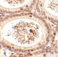 SPATA3 Antibody: The testis and spermatogenesis cell apoptosis related gene 1 (TSARG1) protein, also known as SPATA3, is highly expressed in testis, and to a lower extent in other tissues. SPATA3 contains a highly conserved J domain, which is present in all DnaJ-like proteins, and is thus a novel member of the HSP40 protein family. SPATA3 is thought to be involved in apoptosis of spermatogenic cells.