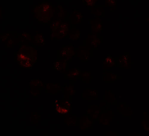 Immunofluorescence of PRICKL4 in A549 cells with PRICKLE4 antibody at 20 μg/mL. |