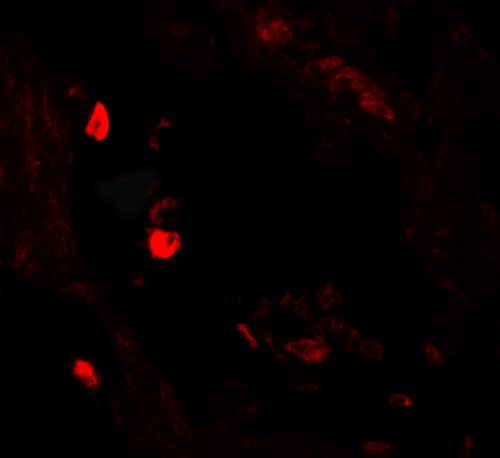 Immunofluorescence of LNPEP in human lung tissue with LNPEP antibody at 20 μg/mL. |