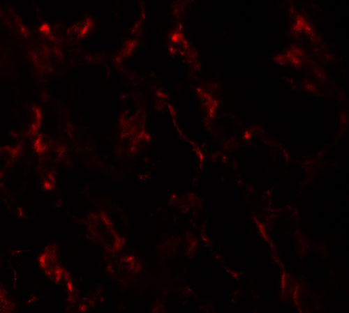 Immunofluorescence of GHDC1 in human breast tissue with GHDC1 antibody at 20 μg/mL. |