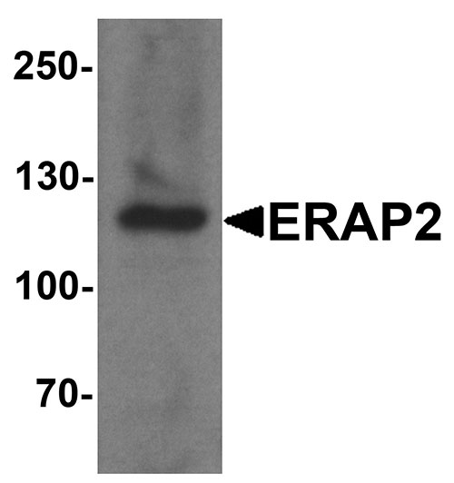 ERAP2; ERAP2 antibody is human reactive. Multiple isoforms of ERAP2 are known to exist. ERAP2 antibody is predicted to not cross-react with ERAP1.